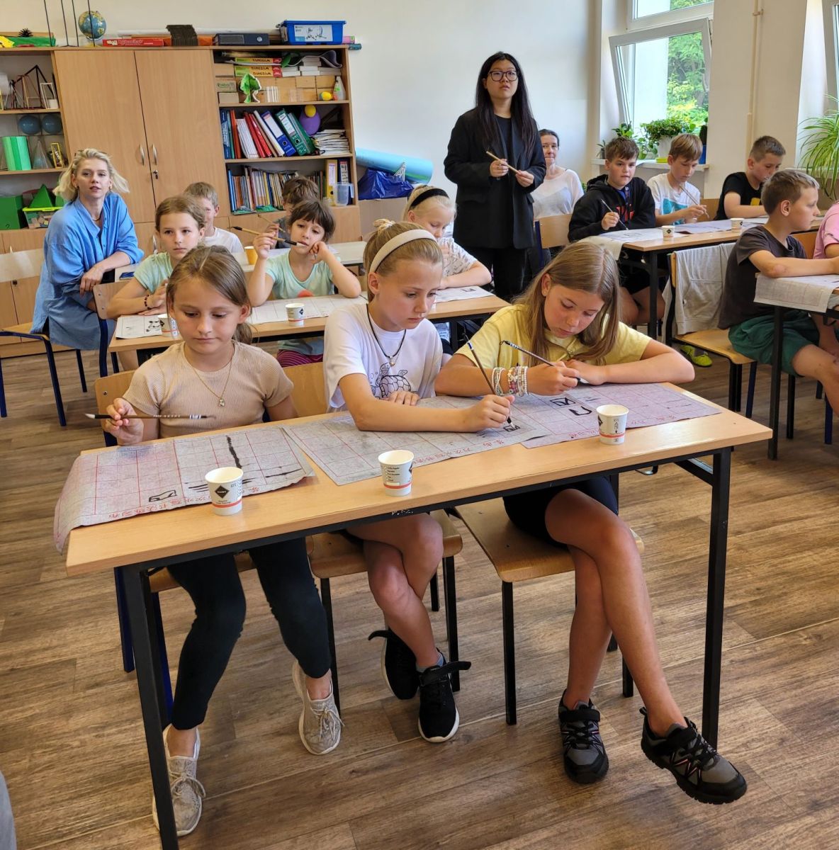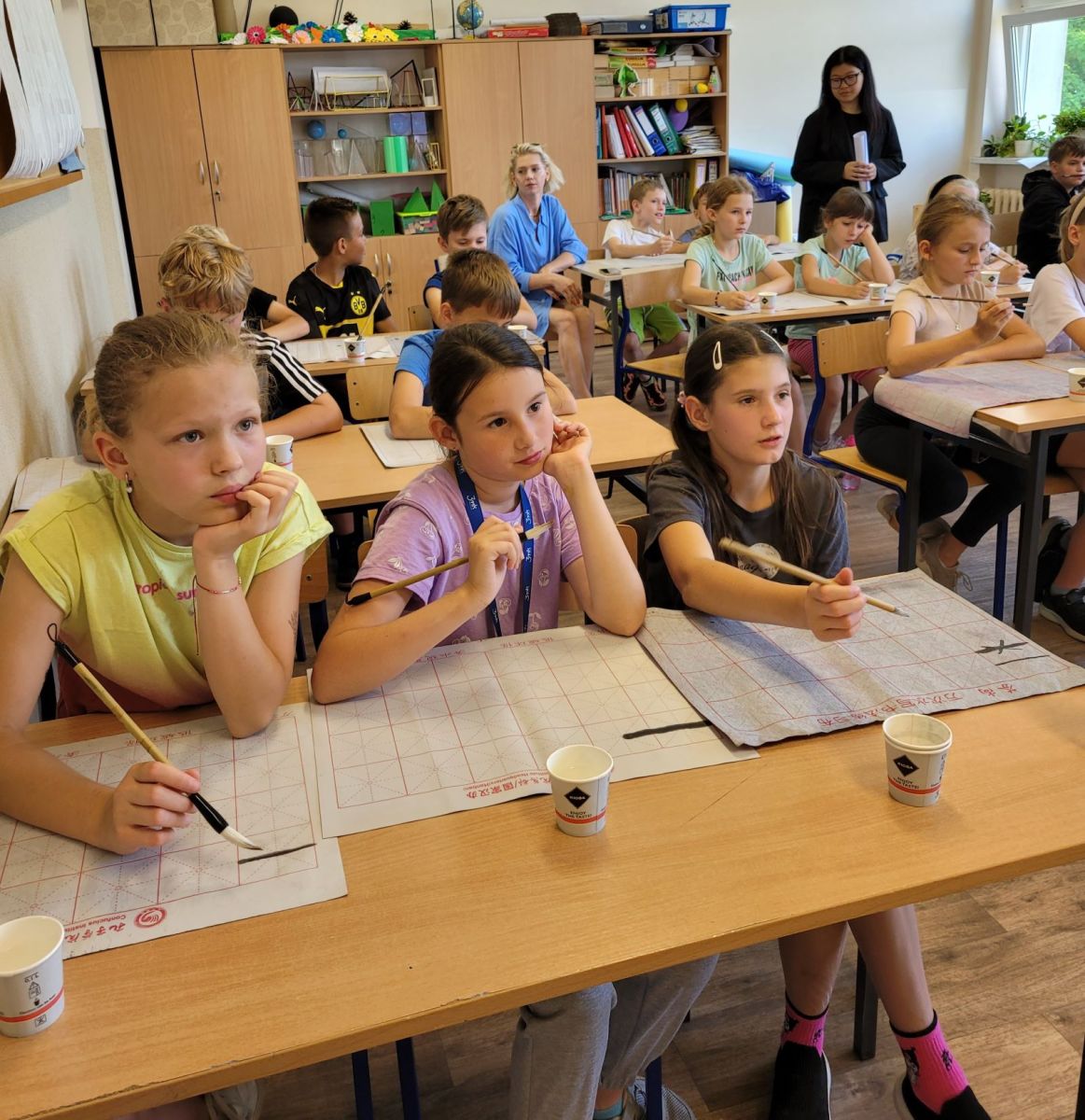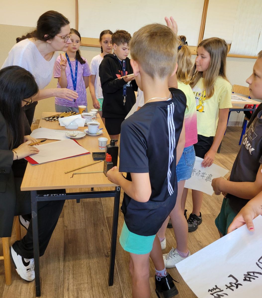 Panie z Chin wprowadziły dzieci w fascynujący świat chińskiego pisma. Uczniowie dowiedzieli się, czym są znaki chińskie, jak się je zapisuje oraz jaka kryje się w nich symbolika. Największą atrakcją okazała się praktyczna część zajęć — dzieci, korzystając ze specjalnie przygotowanych kartek, mogły spróbować samodzielnie napisać kilka chińskich znaków. Każdy z uczestników otrzymał także swoje imię zapisane w języku chińskim, co wzbudziło ogromną radość i dumę.