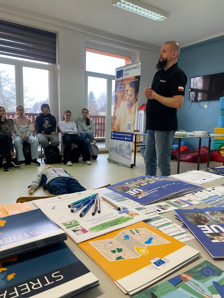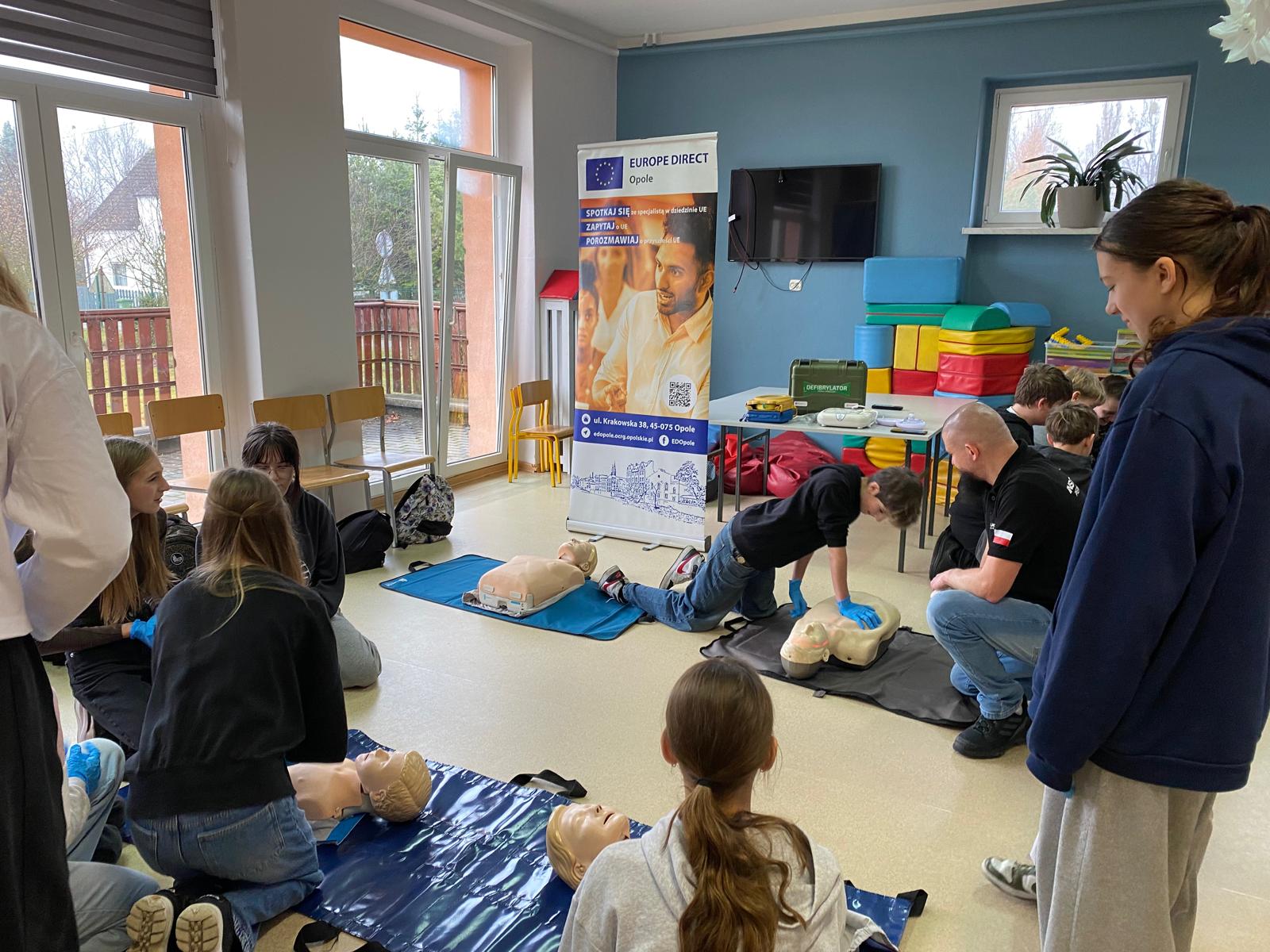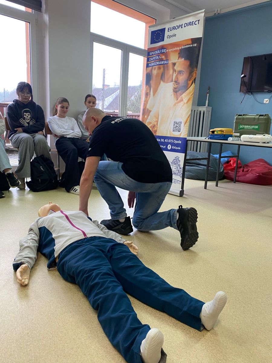 Nasi uczniowie kl. VII i VIII w ramach Europejskiej Akademii Umiejętności wzięli udział w zajęciach teoretycznych i praktycznych z udzielania pierwszej pomocy przedmedycznej. Szkolenie poprowadził Pan Piotr Kozieł- pedagog specjalny, nauczyciel, ratownik OSP i PCK, instruktor pierwszej pomocy, dowódca specjalistycznych zespołów poszukiwawczo - ratowniczych OPOLSAR, student ratownictwa medycznego.